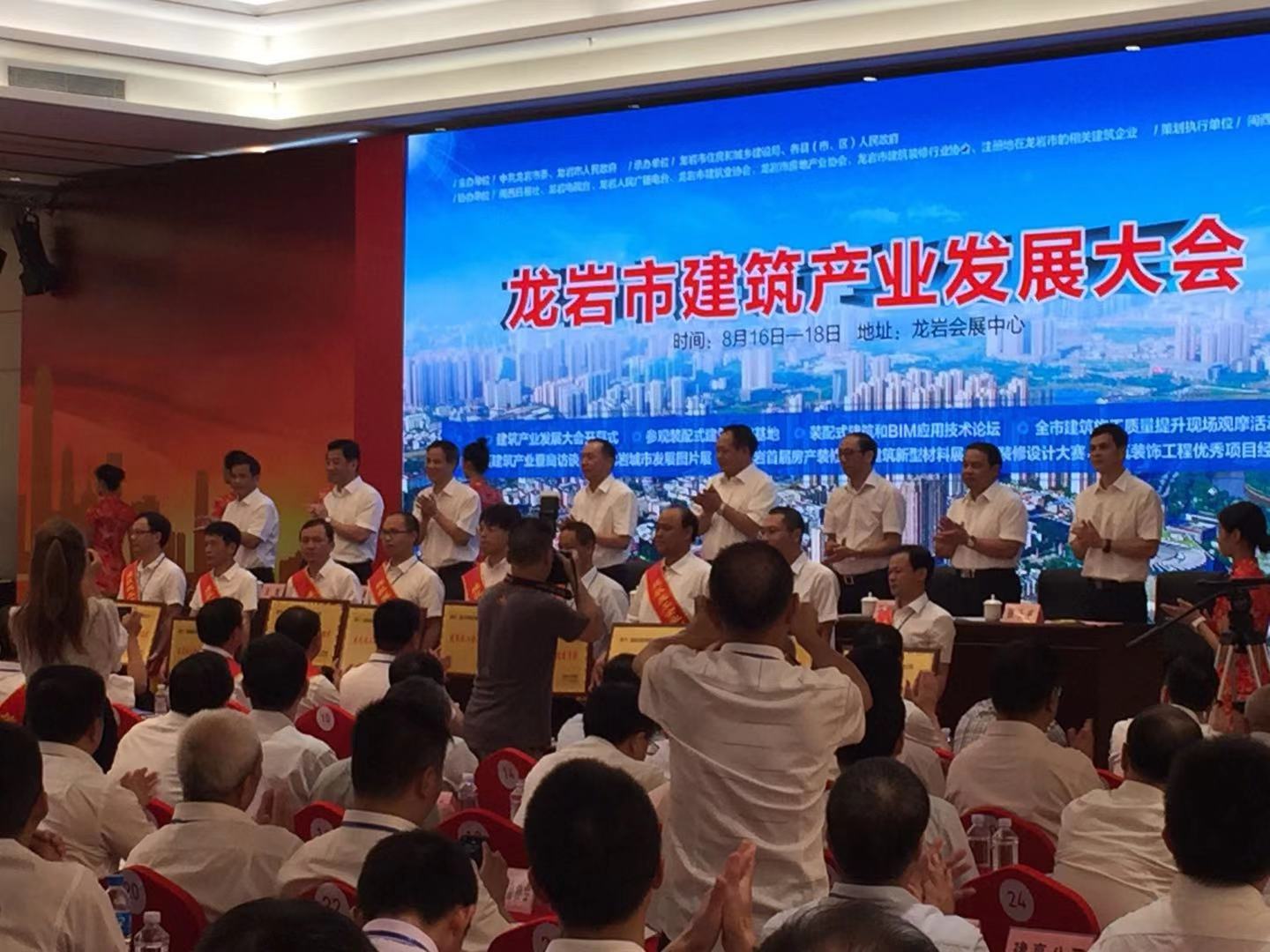 本次會(huì)議由副市長(zhǎng)黃慶輝主持,市委書(shū)記許維澤和住建廳副廳長(zhǎng)王明炫到會(huì)講話,常務(wù)副市長(zhǎng)王龍宣讀《龍巖市人民政府關(guān)于表?yè)P(yáng)具有突出貢獻(xiàn)的建筑施工企業(yè)的通報(bào)》,受表?yè)P(yáng)的我市企業(yè)有:聯(lián)泰、恒基、杭輝、成森、同源、才溪、惠豐、恒富、榮建、新華夏、恒億、閩交、交建、登凱成龍、泰宏、西安、海瑞、梁禹、泰成、紫金礦業(yè)、龍達(dá)、啟榮、麒麟等23家公司,與會(huì)領(lǐng)導(dǎo)為獲獎(jiǎng)企業(yè)頒獎(jiǎng)。會(huì)后,市領(lǐng)導(dǎo)、嘉賓還一同參觀了龍巖城鄉(xiāng)發(fā)展圖片展等,上午企業(yè)家們還參觀了我市裝配式生產(chǎn)基地。16—18日還舉行了一系列配套活動(dòng)。